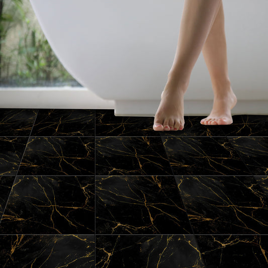 Black Gold Marble Premium Peel and Stick Floor Tile Stickers | Removable, Renter friendly with Anti-Slip finish in sturdy 520 microns
