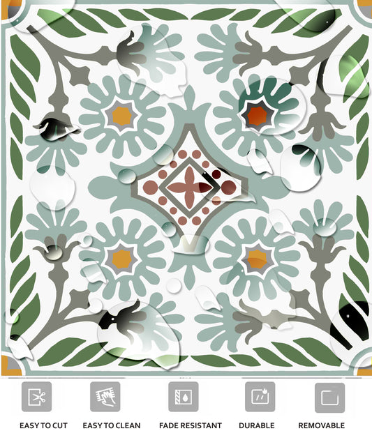 Mage Green Mosaic Premium Peel and Stick Floor Tile Stickers | Removable, Renter friendly with Anti-Slip finish in sturdy 520 microns