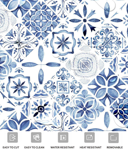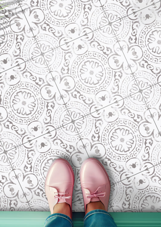 Encaustic Premium Peel and Stick Floor Tile Stickers | Removable, Renter friendly with Anti-Slip finish in sturdy 520 microns