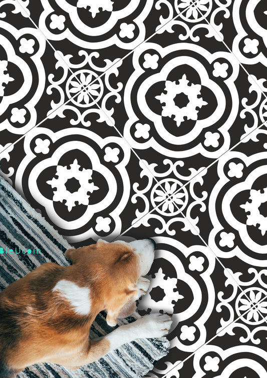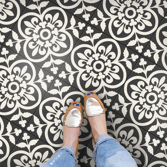 Stockholm Black Premium Peel and Stick Floor Tile Stickers | Removable, Renter friendly with Anti-Slip finish in sturdy 520 microns