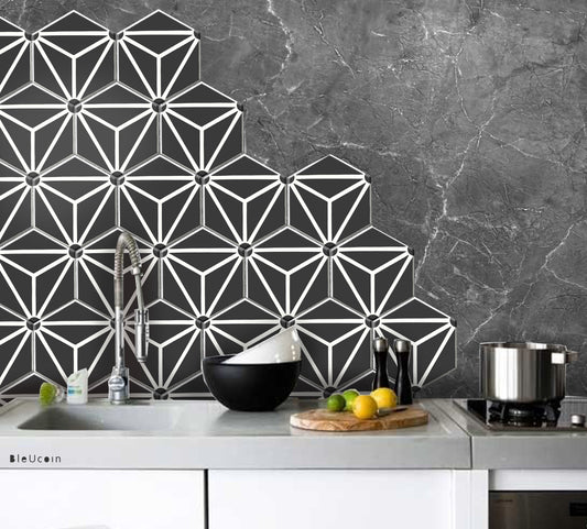 Iwaki Black hexagon peel & stick tile