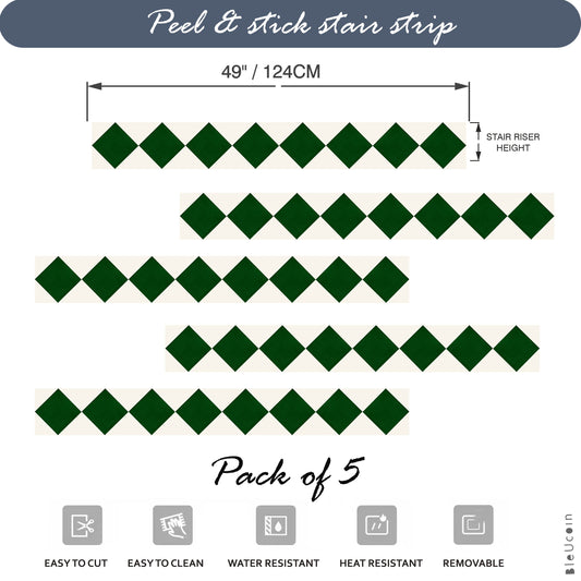 Diamond Moss Green & Off White Peel & Stick Stair Strips
