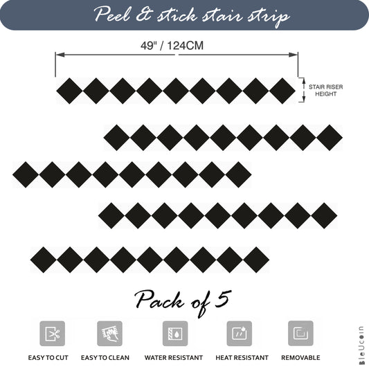 Diamond Black & White Peel & Stick Stair Strips