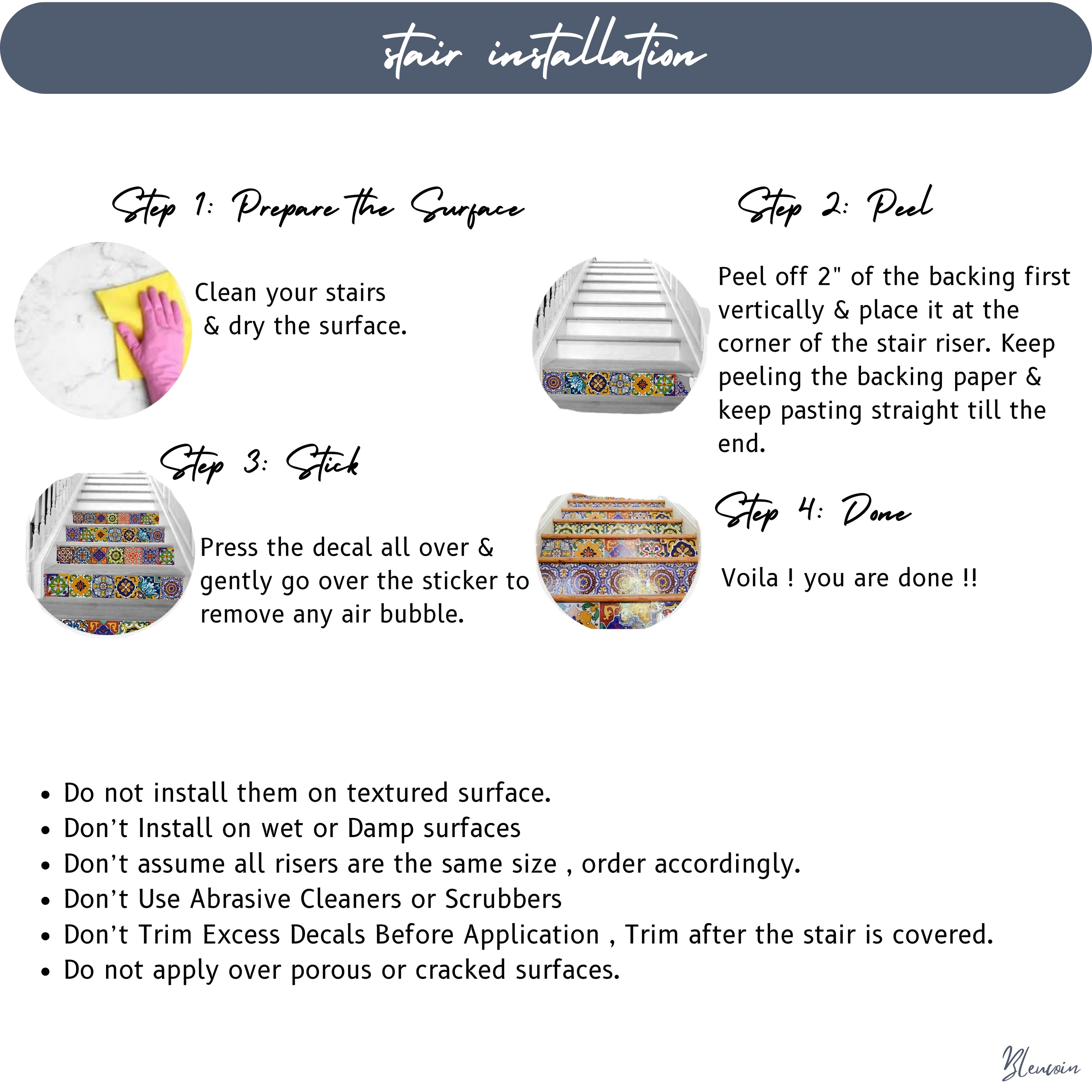 Bleucoin Peel & Stick Stair Stickers – Stair Decals for DIY Stair Makeovers
