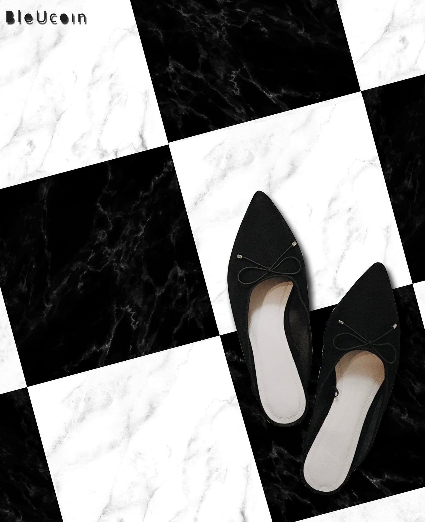 Marble Black & White Checker Peel & Stick Tile Decal